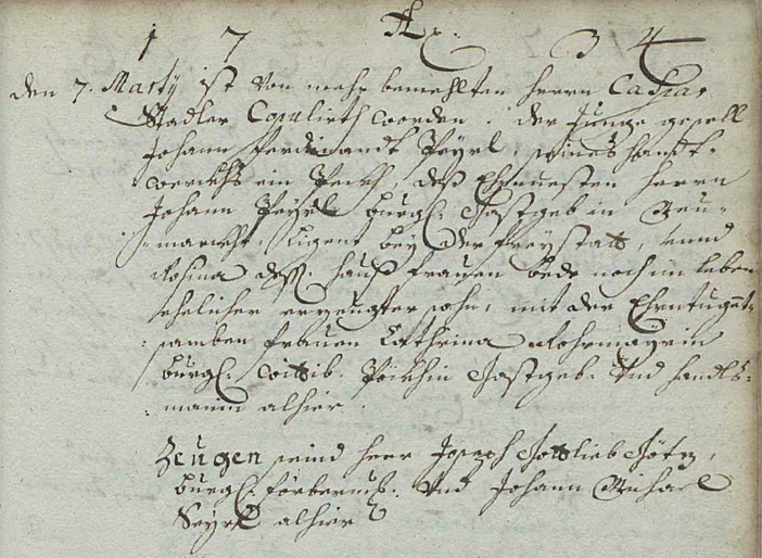 Zeugen seindt vor benannten [1] zway Herrn beede Rathsbürger alhier.