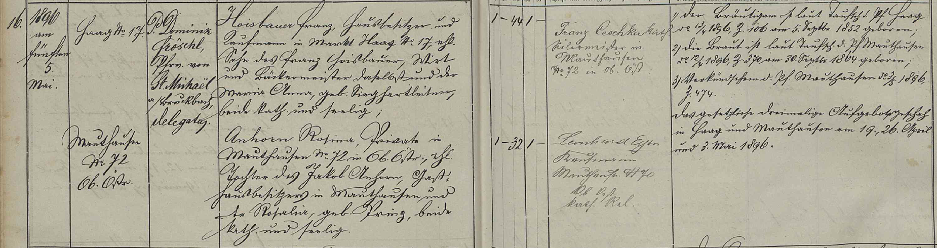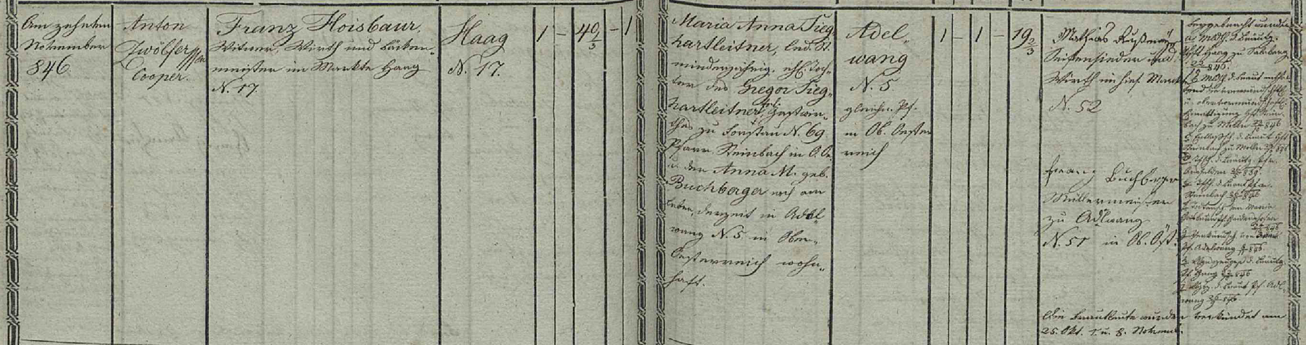 Franz Hoisbauer, Witwer, Wirth und Bäckermeister im Markte Haag Nr. 17.