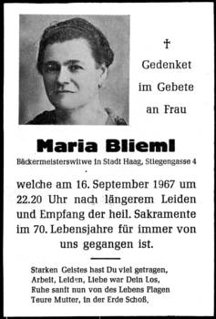21. 2. 1922 | Alois und Maria Barbara (Lintl) Blieml |