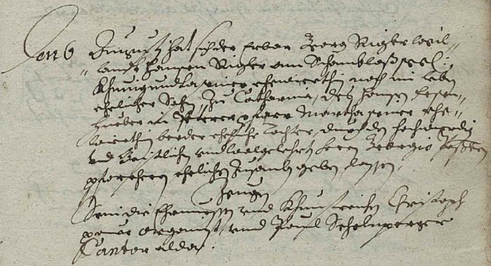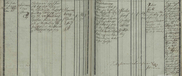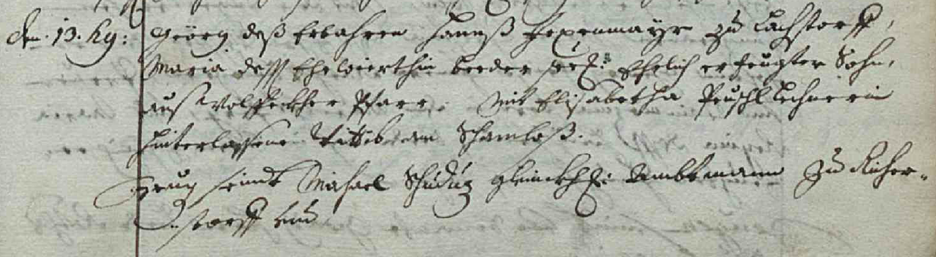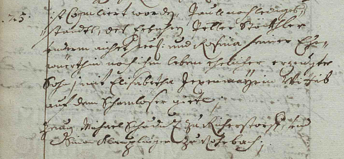 den 6 Augusti hat sich der erbar Georg Rigler weillant Hansen Rigler am Schambloß seelig, Khunigunda seine Ehewirthin noch im Leben, ehelicher Sohn, zu Catharina, des Hans Fesenhueber in Peterer Pfarr Martha seine Ehewirthin beeder eheliche Tochter, durch den hochwirdig und gaistlich und wohlgelehrter Herr Georgio ... ehelich zusamb geben lassen.