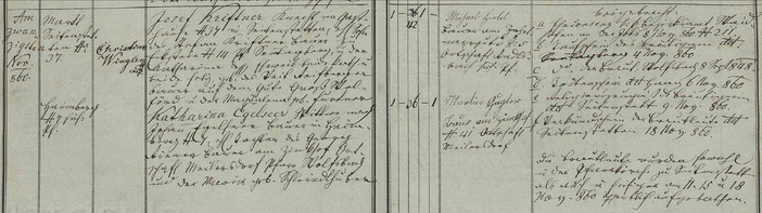 Katharina Egelseer, Witwe nach Johann Egelseer, Bauer in Haimberg Nr. 7, ehl. Tochter des Georg Riener, Bauer am Zinkhof, Ortschaft Meilersdorf Pfarre Wolfsbach und der Maria geborene Schleindlhuber.