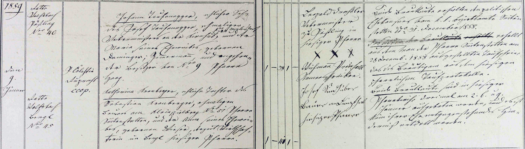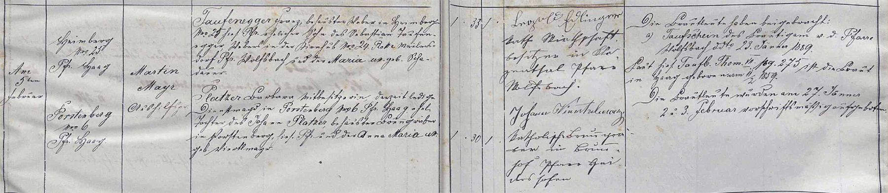 Johann Taufenegger, ehelicher Sohn des Josef Taufenegger, ehemaliger Webermeister an der Kirnhub, und der Maria seines Eheweibes geborene Feminger, Zimmermann und angehender Besitzer von Nr. 9 Pfarre Haag.