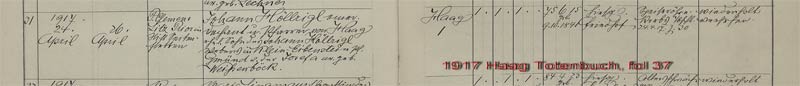 - † 24. 4. 1917 in Haag (Speiseröhrenkrebs; wiederholt versehen) eingesegnet vom Prior in Seitenstetten, P. Clemens Litz am 26. 4. 1917