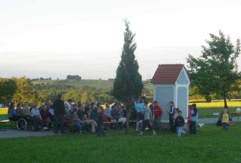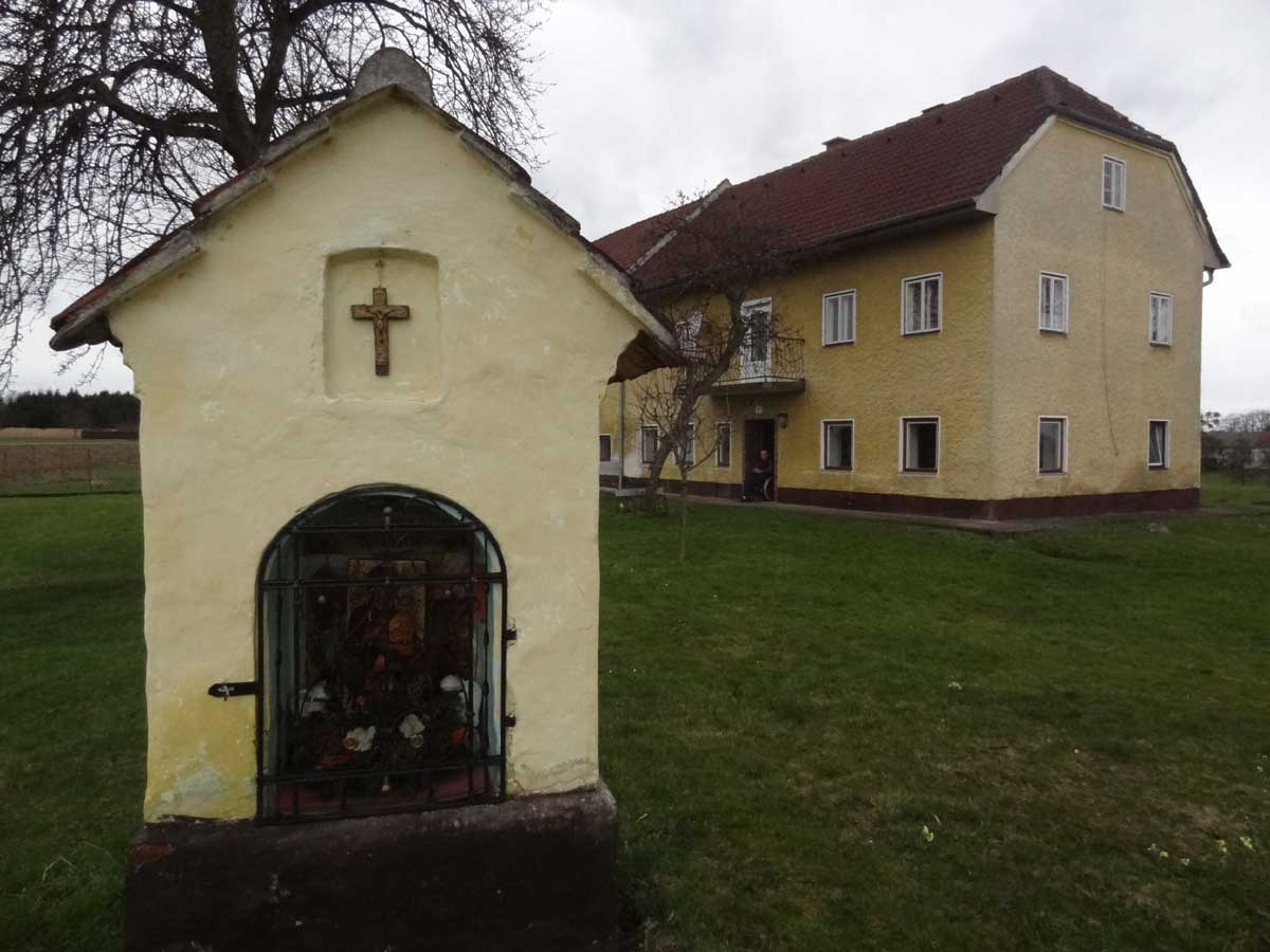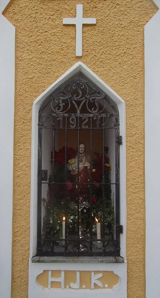 "Maikapelle". Diese Kapelle lag früher am sogenannten Kirchenweg. Daher steht die Kapelle auch verkehrt zum Haus.