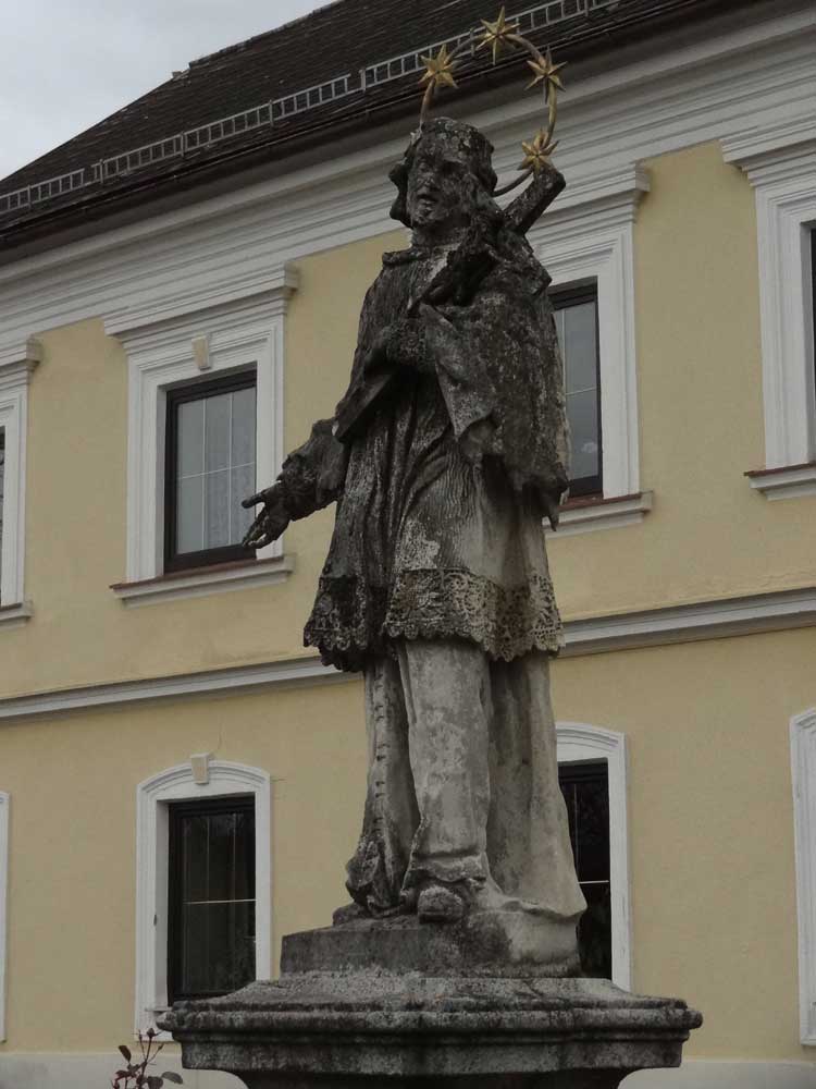 vor dem Gasthaus beim Tieerpark (Pächter: Pfaffeneder) steht eine Steinfigur des hl. Johannes Nepomuk (1345-1393). Aus zogelsdorfer Stein ist diese lebensgroße Statue gefertigt. Das Entstehungsjahr ist ungewiß.