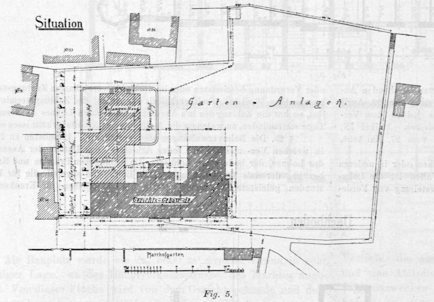 In dem Bestreben, ein solches nach allen Richtungen entsprechendes Gebäude zu schaffen, wurden mehrere Architekten eingeladen, Projecte zu verfassen, und fand das vorliegende Project die Genehmigung sowohl der Gemeinde, als auch der Justizbehörde und des Ministeriums.